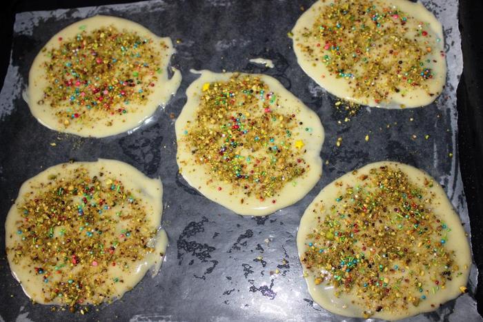 Поступаем так же с оставшимся тестом, меняя каждый раз бумагу. Кстати, бумагу важно использовать качественную, либо лучше воспользоваться фольгой. Последнюю партию я делала на ней и мне так даже больше понравилось, тесто лучше отходило.