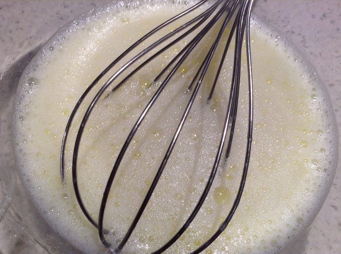 Смешать 200 мл воды, яйцо, 1ст. л. уксуса и 1 ст. л. оливкового масла.
