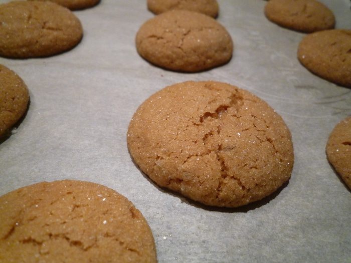 Выпекать 6-8 минут или до появления первых трещинок на поверхности печенья.