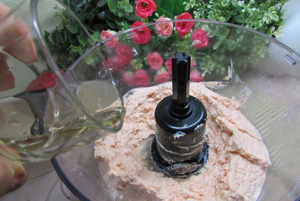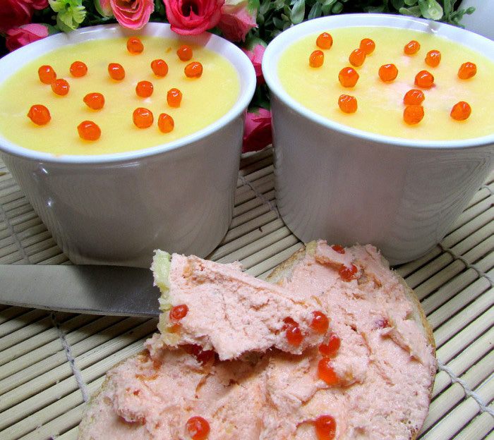 Паштет отправить в холодильник, до полного застывания масла. Перед подачей украсить икринками.