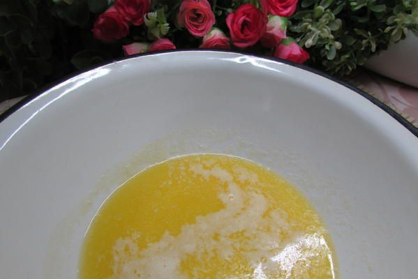 Растопить 40 г. сливочного масла. Оно расслоится на 2 части, из которых нам понадобится только верхняя, янтарно-желтая и прозрачная.