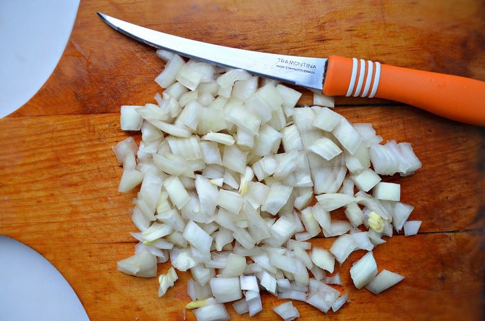 Лук очистить и мелко порубить.
