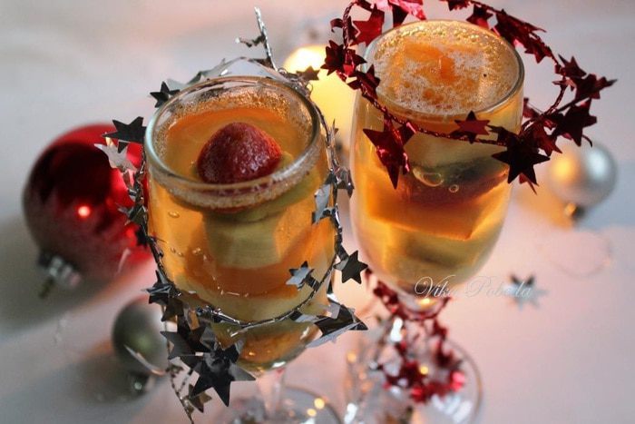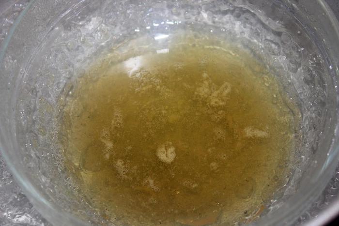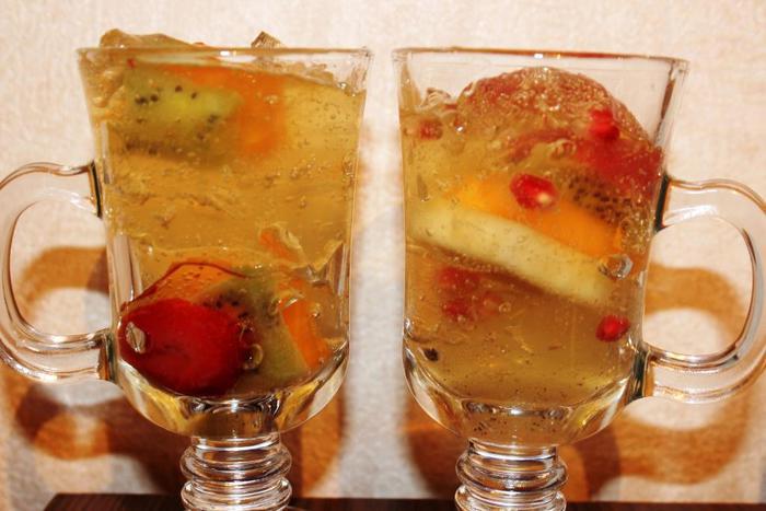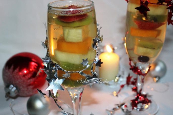 Несмотря на вышеописанные свойства киви, мне чересчур хотелось видеть его в своем десерте (очень уж у него новогодний цвет), поэтому я предварительно опустила нарезанные кусочки в кипяток на несколько секунд, а затем промыла их в холодной воде. Это снизило кислотность киви.