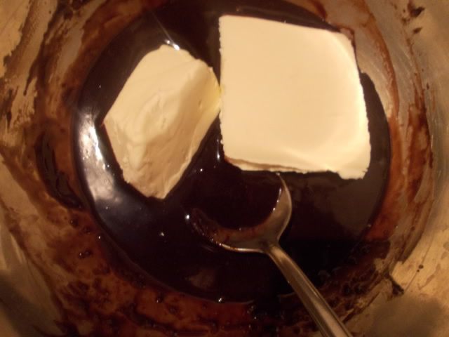 Шоколад растапливаем на водяной бане с водой. Добавляем сливочное масло и даем ему растворится. Несколько ложек оставить для смазывания печенюшек.
