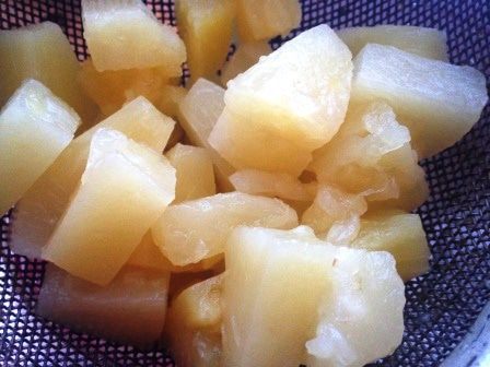 Ананасы процедить от жидкости. При необходимости нарезать.