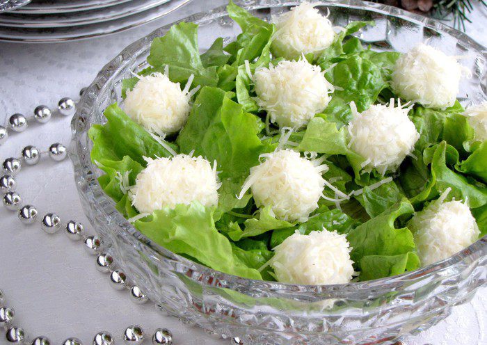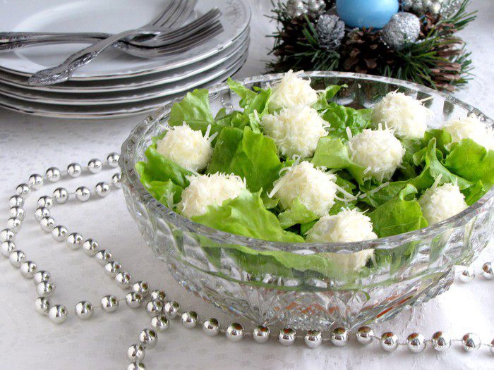Предлагаю приготовить греческий салат по-новому! Оливки заменим на авокадо, добавим ароматных трав, а фету оформим в виде снежков. Новый вкус, праздничный внешний вид и минимум калорий.