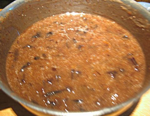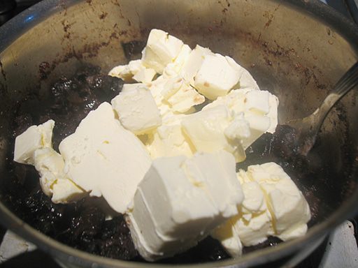 Снять с огня и сразу добавить порезанное мелкими кусочками масло. Быстро перемешать до растворения масла.
