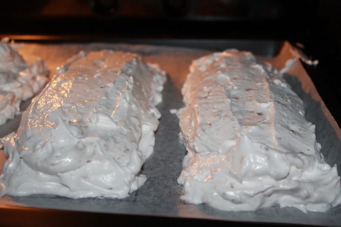 На обратную сторону пергамента выложить ровно по рисунку будущее безе и в духовку на сушку на 2 часа. Первый час духовку не открывать. По истечению времени коржи остудить при закрытой дверце.