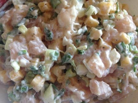 Куриное филе помыть, обсушить, порезать мелко. Сыр порезать мелкими кубиками. Мелко покрошить лук и зелень.