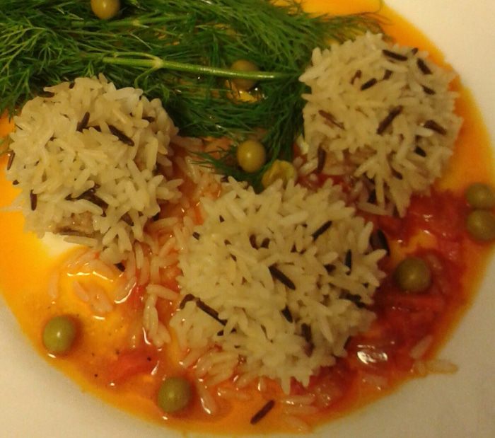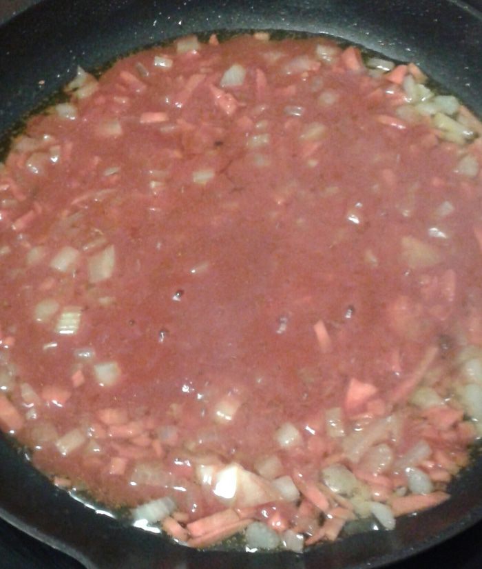 Подать фрикадельки можно с томатным соусом, для этого лук, морковь, стебель сельдерея режим мелко. На растительном масле лук доведем до прозрачности, добавим морковь и сельдерей. Томатную пасту развести кипятком ( 0,5 стакана) и добавить в соус тушиться минут 5-7.