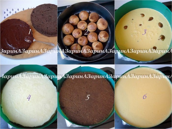 Рецепт очень длинный, но вы не пугайтесь, я постаралась расписать каждый шаг, что бы кто-либо решился и приготовил тортик. Процесс таких сложносоставных тортов я разбиваю на два этапа - дня. В первый день выпекала бисквит, профитроли с кремом и сделала шоколадную прослойку. Во второй день приготовила крем - суфле и собрала торт, а так же его украсила. Рецепт авторский.
