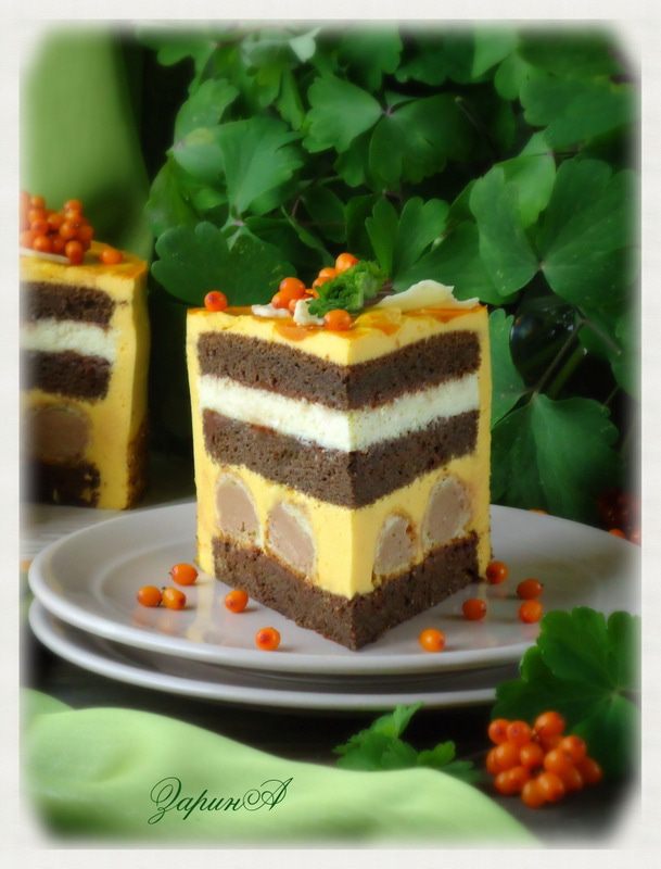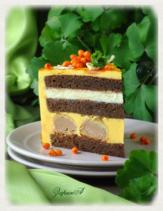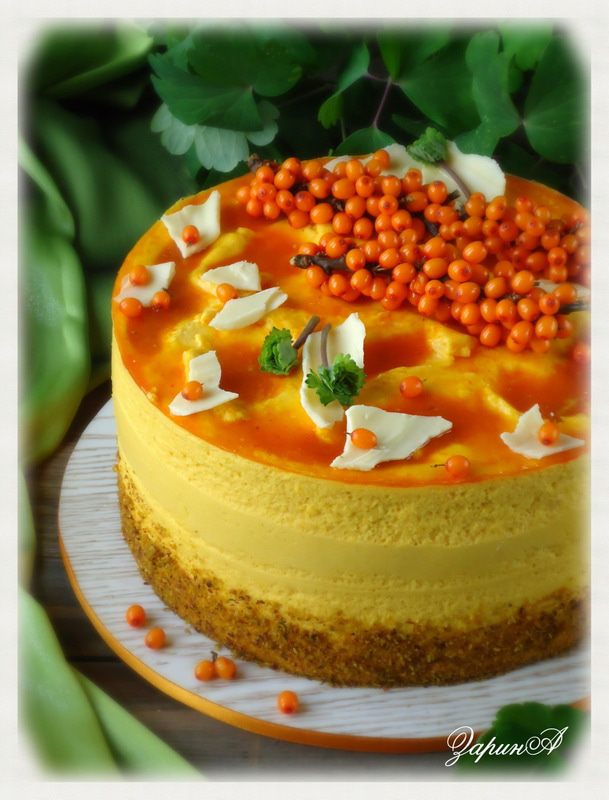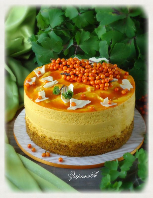 Такой тандем – черемухи и облепихи, давно крутился в голове, как осенний вальс. Собственно, отсюда и название торта. Черемухово – миндальный вкус бисквита, облепиховое суфле, нежное, ванильное крем – брюле и шоколадно – кофейная нотка. Необыкновенное сочетание вкусов, да и на вид он получился бравурным и огненным, как сама осень!