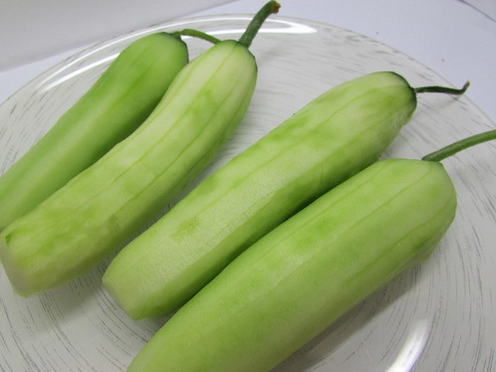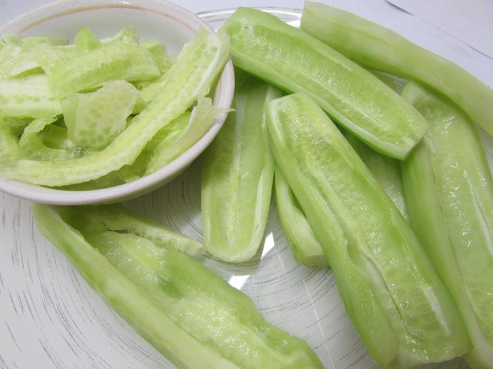 Свежие огурцы помыть, обсушить. Снять тонким слоем кожицу с помощью овощечистки.