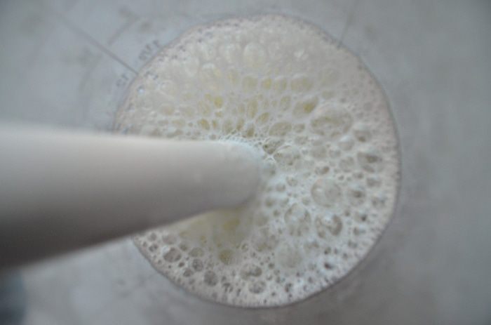 Взбейте белок с щепоткой соли в пену и аккуратно равномерно вмешайте в тесто.