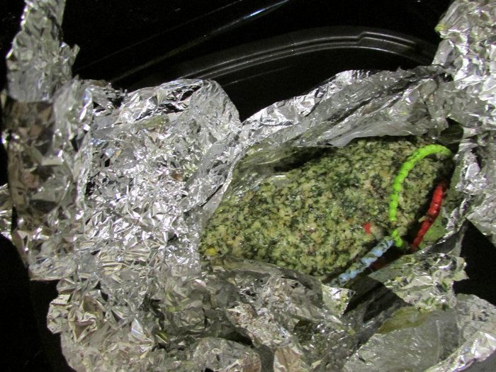 Рулет плотно завернуть в фольгу. Отправить в разогретую (230 градусов) духовку на 15 минут, затем температуру убавить до 190 градусов и запекать рулет 45 минут.