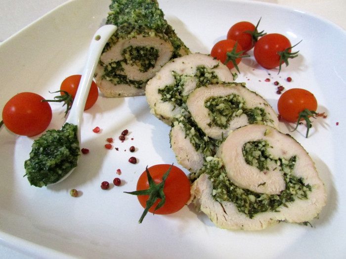 Рулет из индейки – замечательное блюдо для праздничного стола и для семейного меню выходных дней. Предлагаю приготовить отличный рулет из индейки. Рулет - нежный, в меру сочный, с тонким вкусом, который раскрывается благодаря сочетанию соуса песто с мясом индейки. Теплый рулет можно подавать с салатом из свежих овощей. Холодный рулет - это отличный перекус. Надеюсь, что этот рулет из индейки понравится вашим гостям и близким.