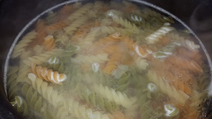 Цветную пасту отвариваем в подсоленной воде до состояния " al dente"