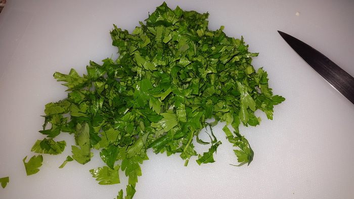 Мелко рубим петрушку.