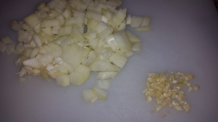 Лук и чеснок мелко рубим.
