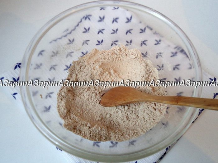Гречишную муку и разрыхлитель просеять, смешать с отрубями и ванилином.
