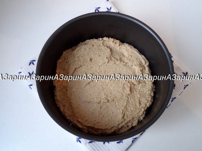 Выложить тесто в форму d = 18 см, смазанную маслом. Выпекать пирог в заранее разогретой духовке до 180 градусов, 30 минут.
