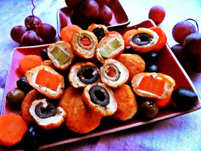 Жарим в масле,вынимаем на салфетку. Получается из одного сырка до 15 мини пирожков,но для гостей нужно увеличить порцию!