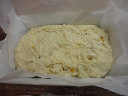 В подошедшее тесто добавить промытый и обсушенный изюм. Форму смазать маслом или выстлать пекарской бумагой и дно выложить неочищенным миндалем, вылить тесто и дать ему подойти в форме еще 30 минут.