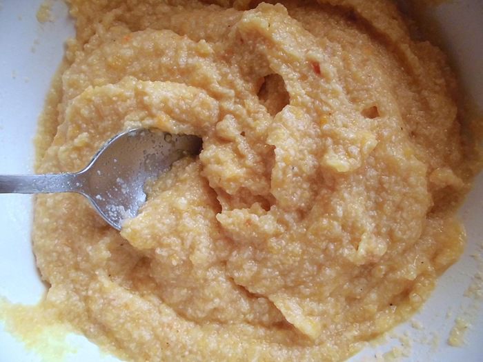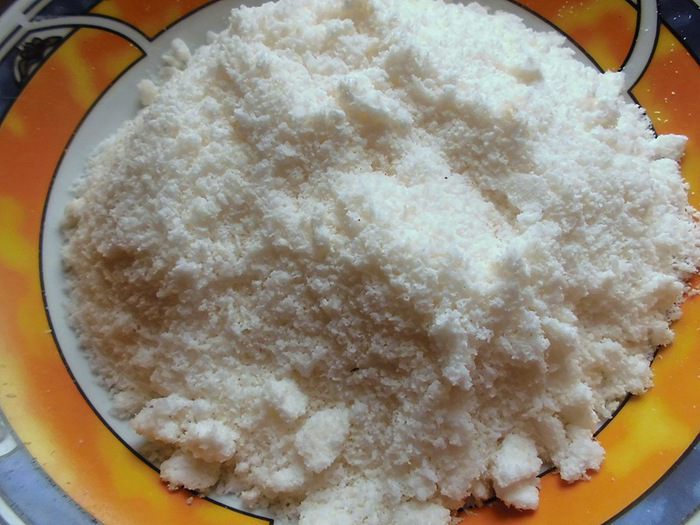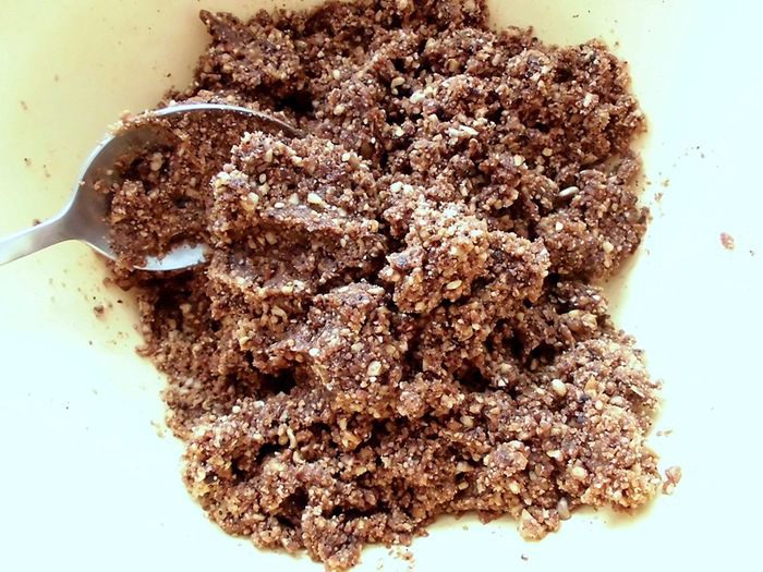 Постепенно добавить измельченную кокосовую стружку и мёд (вообще его добавлять не обязательно, но мне в этот раз было недостаточно сладко, поэтому положила и его). Тщательно перемешать. Должен получится очень нежный, но довольно густой крем. Если будет слишком густо, добавить еще воды. Когда Вы будете готовить, то сами поймете, сколько ее потребуется.