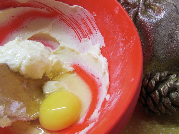 Ввести яйцо и вновь растереть до однородной массы.
