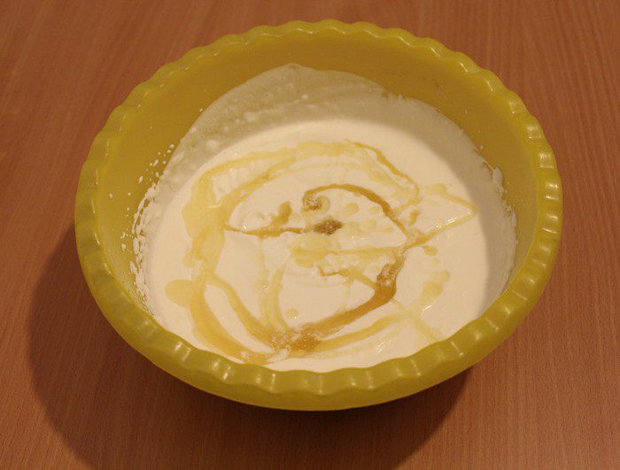 Перемешать. По одному добавить яйца. Все хорошо перемешать еще раз.