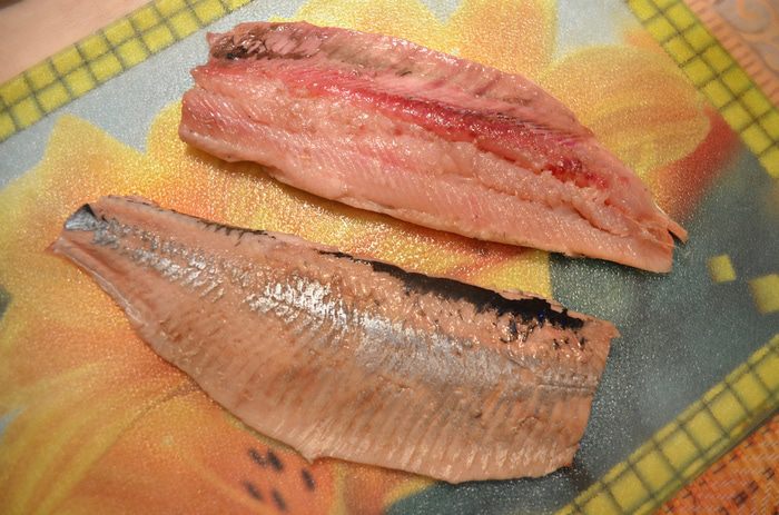 Чистим рыбу и разделываем её на филе, стараясь удалить косточки.