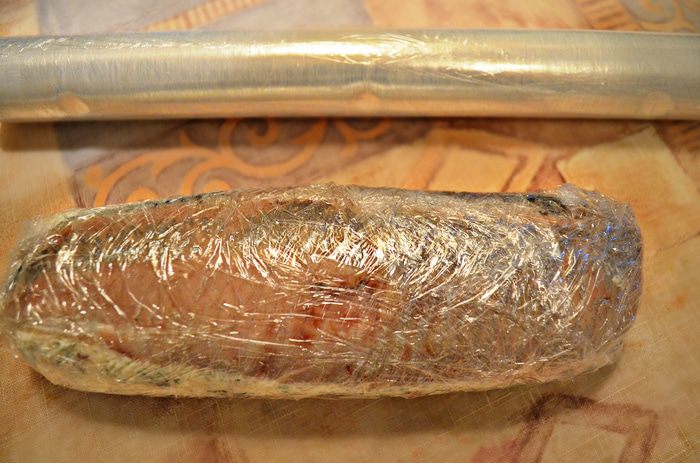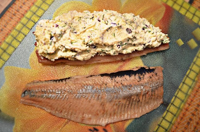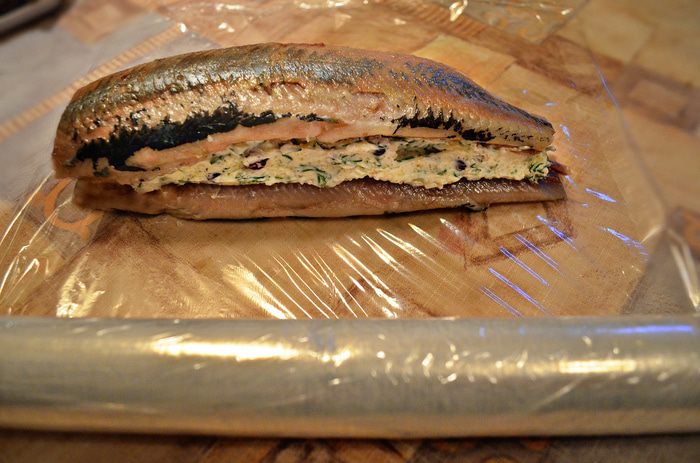 Накрываем второй половинкой так, чтобы хвостовая часть рыбы была напротив головной.