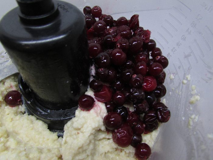 В оставшийся крем добавьте клюкву и снова хорошо смешайте.