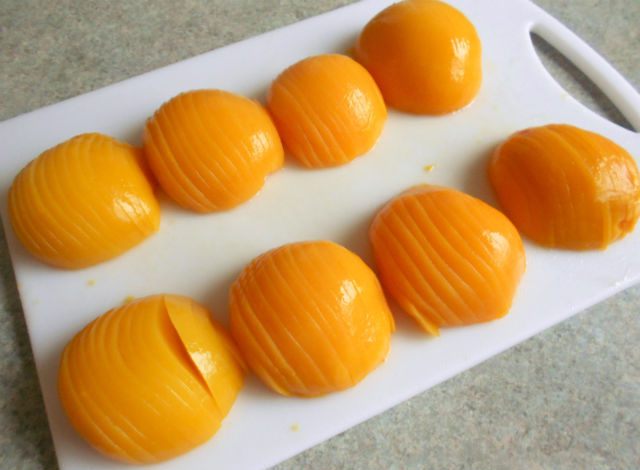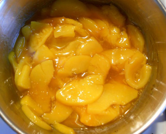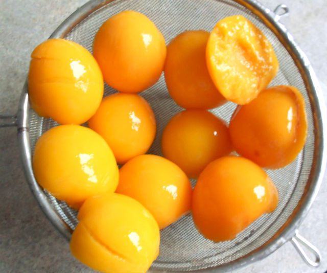 3 банки по 411 г половинок консервированных персиков или 2 по 825 г (с более крупными плодами)