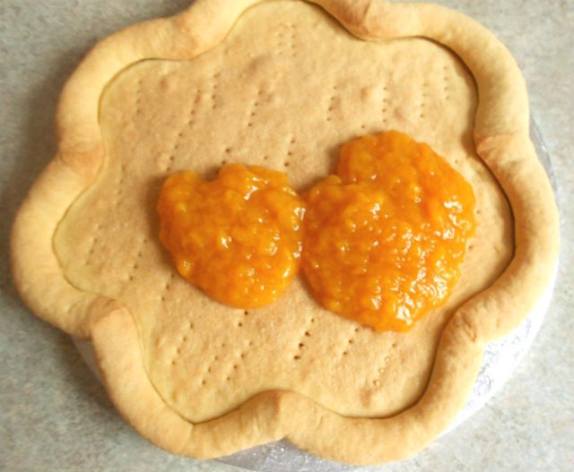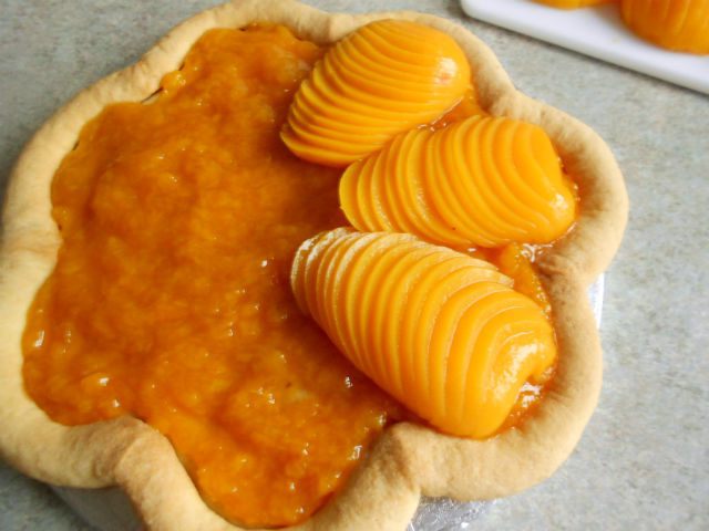 3 ст.л. с горкой абрикосового или персикового джема. С абрикосовым мне нравится больше, персиковый более кислый и менее ароматный.