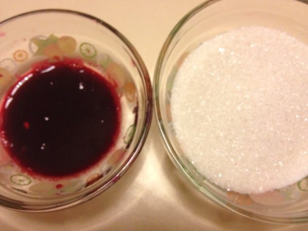 Сок свеклы и сок лимона соединить. Приготовить тарелочку с сахаром для обкатывания.