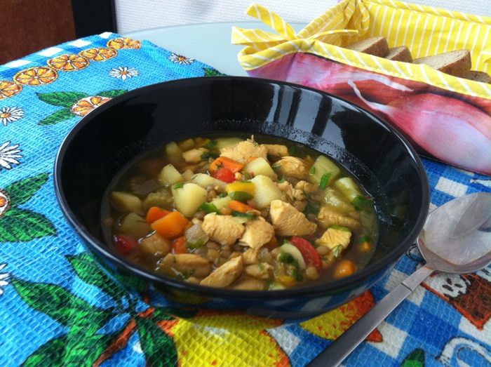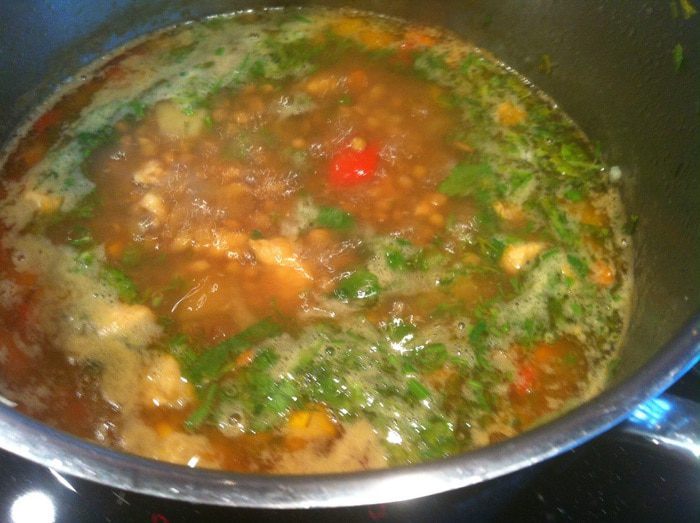 Добавьте чечевицу, если требуется досолите, добавьте лавровый лист, и варите 20-25 минут.