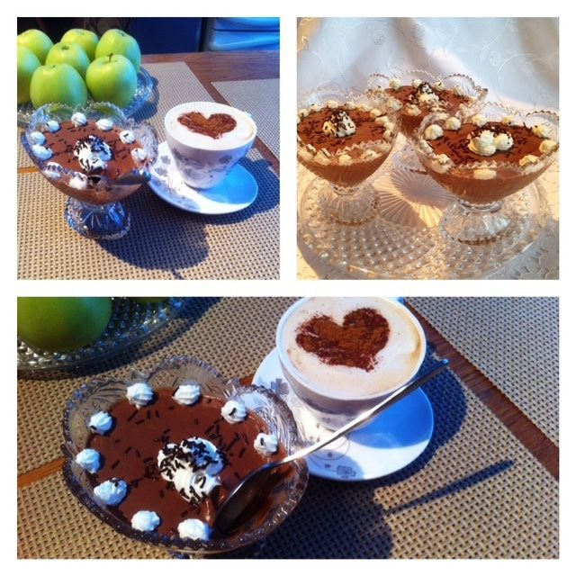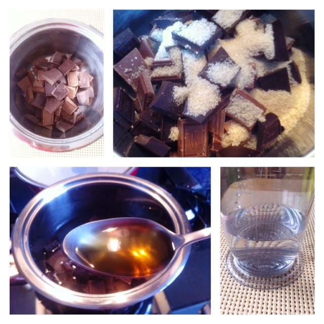 Сверху наливаем воду, затем добавляем коньяк (можно использовать бренди, виски, кленовый сироп и так далее. Используем что-то жидкое и с крепким вкусом. Мусс от этого становится объёмнее/пышнее)))).