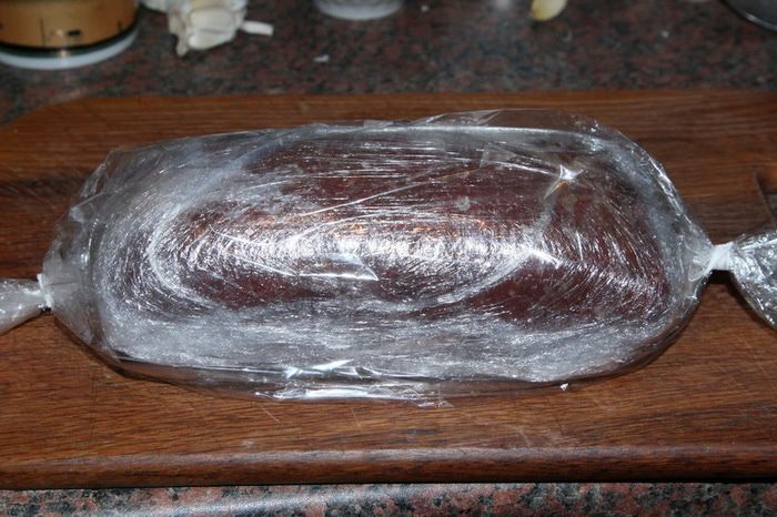 ставим кастрюлю с водой на огонь, "тутанхамончика" помещаем дополнительно в рукав для запекания и хорошо скручиваем целлофан, чтобы вода не проникала внутрь. Отправляем в воду, как только вода закипит, снижаем уровень огня и на таком медленном огне под крышкой готовим 1,5 часа.