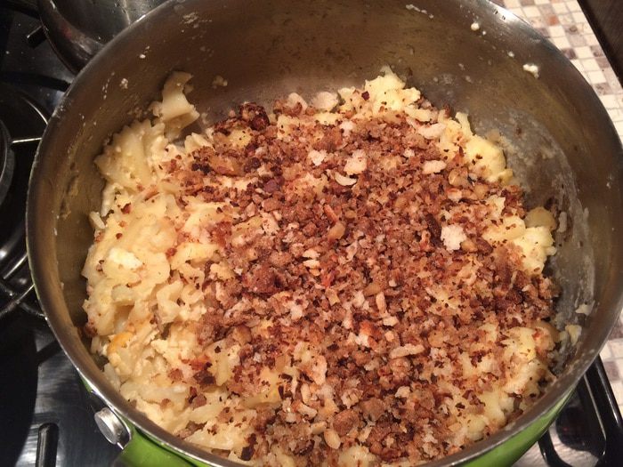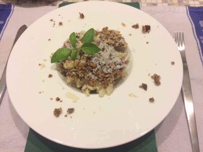В это время, ставим сотейник со сливками на средний нагрев, крошим туда мелко буквально половину столовой ложки свежего розмарина (или тимьяна или шалфея, это по вкусу), доводим почти до кипения, но не кипятим конечно. Загущаем сливки взбитым яйцом (можно одним желтком).