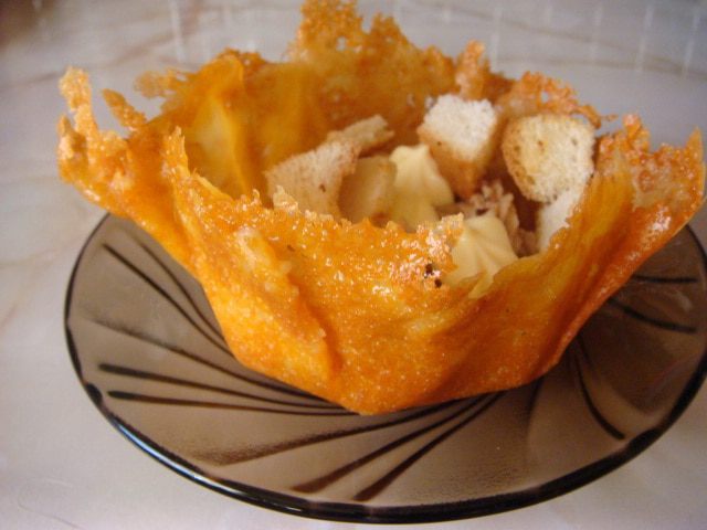 А можно сделать сырные корзиночки,получилось празднично,икру распределила из кондитерского шприца,сверху посыпала сухариками(кусочек батона нарезала на квадратики и посушила на сухой сковороде) и еще сметаной сделала цветочки,оч. хорошее вкусовое сочетание.