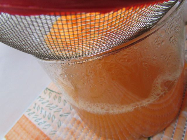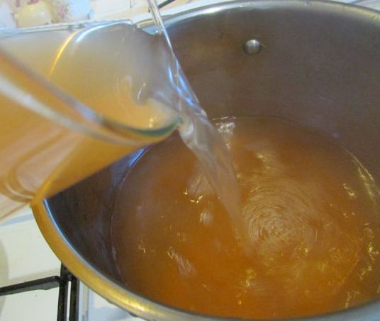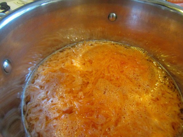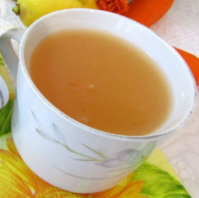 Затем процедить отвар через мелкое ситечко. Морковный жмых выбросить.