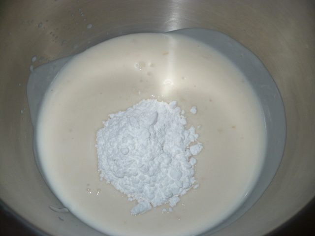 Взбиваем 200 мл. сливок с 3 ст.л. сахарной пудры.