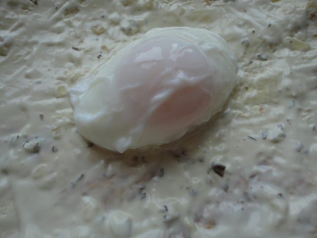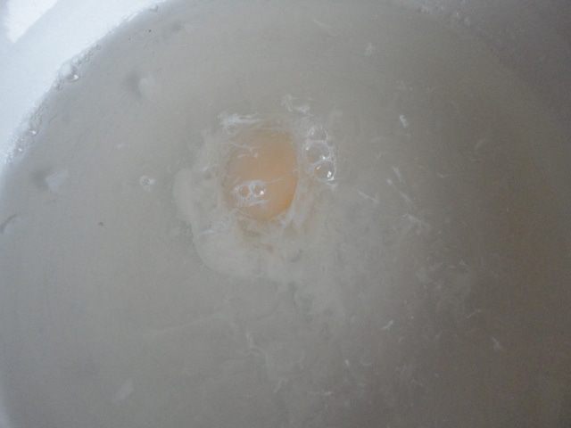 Закипятить воду, убавить огонь до минимума, чтобы не кипела, а просто поддерживалась температура. Лопаткой сделать воронку и вылить яйцо.