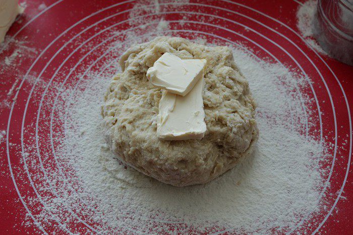 Затем руками вмешайте сливочное масло комнатной температуры