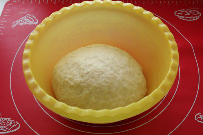 Миску с тестом накройте чистым полотенцем и поставьте в теплое место подниматься на 1 час.