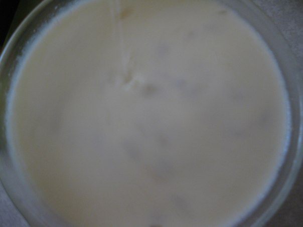 Яйца взбить с молоком и луком.