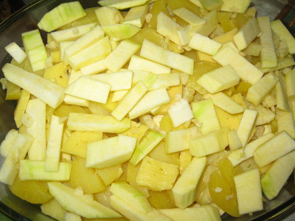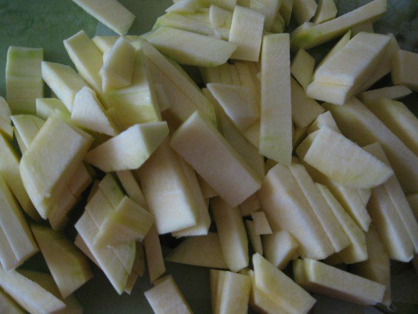 Кабачки почистить и нарезать кусочками.