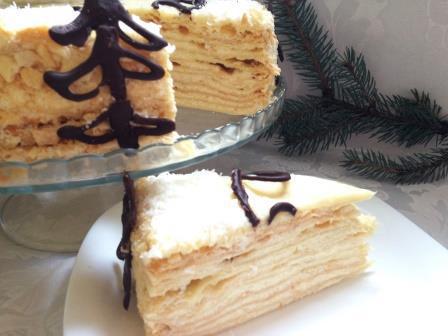Для новогоднего оформления присыпать торт "снегом" из кокосовой стружки (можно весь, а можно, как у меня, только по краю). Прикрепить при помощи остатков крема ёлочки из шоколада. В центр торта можно поставить фигурку новогодней тематики, желательно, съедобную из мастики (или как у меня, тщательно продизенфицированную) или декоративную свечу (в таком подсвечнике, где есть куда стекать воску).
