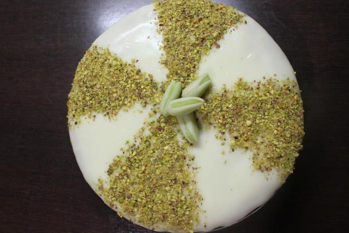 Дело в том, что у меня есть любимое мороженое белорусского производителя с одноимённым вкусом. Это фисташковое мороженое с мягким кремовым наполнителем. Данное сочетание вкуса для меня одно из идеальных, поэтому приготовить подобный тортик я хотела уже давно. Такой, в котором бы фисташковые коржи прослаивались кремом с обалденным вкусом и ароматом марципана.